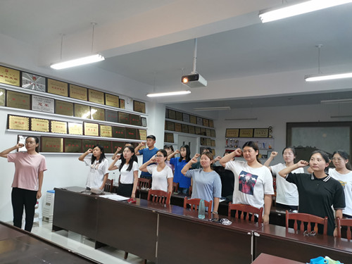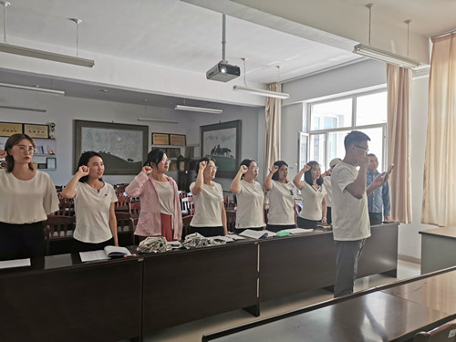 学院新老党员,在鲜红的党旗下,重温入党誓词。庄严的誓词,增强了党员身份意识,提高了党员践行党的宗旨、发挥党员的先锋模范作用、“不忘初心、牢记使命”、为实现“中国梦”而努力奋斗的政治觉悟。