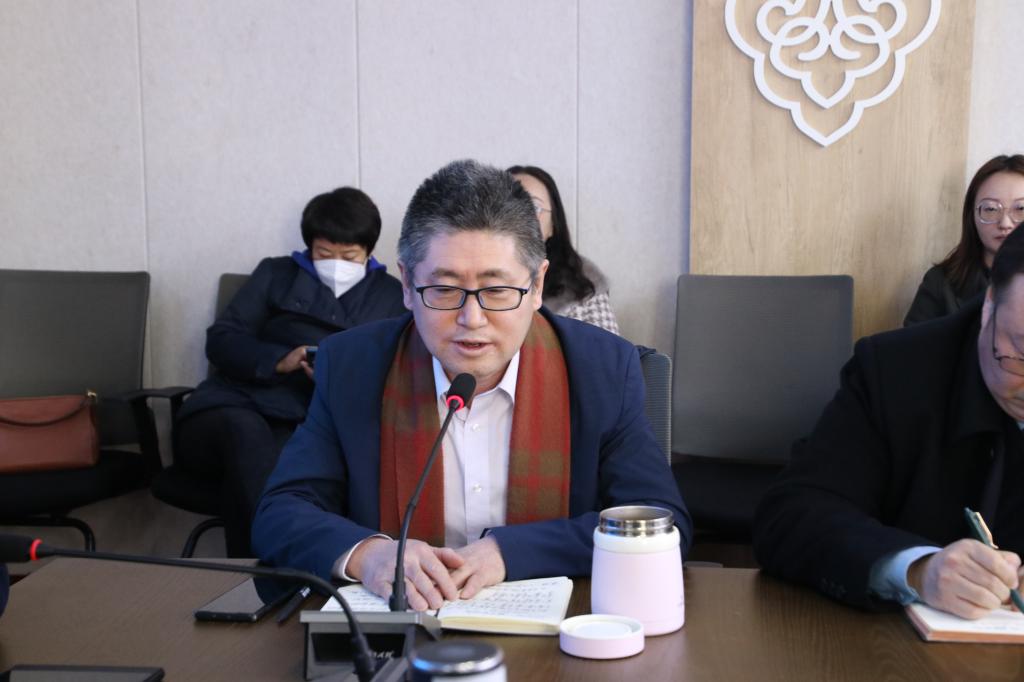满全院长代表全体教师感谢朝戈金研究员一直以来对我校中国语言文学学科建设及beat365英国官方网站各项工作的关注和支持,在人才培养、科学研究、队伍建设、学术交流等方面多次具体指导和实际帮助,为我校中国语言文学学科高质量发展做出了贡献。在学校和社会各界的关怀和支持下,近几年beat365官网在人才培养、科学研究、专业建设、队伍打造、社会服务、文化传承创新、国际交流等诸多方面取得了系统性进展和突破性发展。满全院长指出,我们看到成绩和收获的同时,也清晰地认识到困境和不足,比如,科学技术迅猛发展的今天如何规划传统学科的布局,如何迎接未来学术的挑战,如何推进话语体系的建构以及如何突破在重大项目、重大成果、重大奖项、重大平台、重大会议等方面的瓶颈和困境,都摆在学科建设面前的攻破议题。