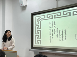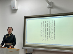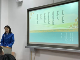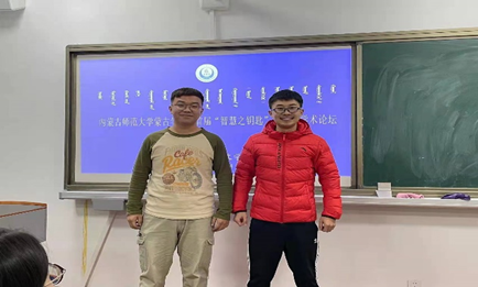 最后、各位评委老师讨论研究之后、以专业角度给出了评分。钦德木尼老师宣读了获奖名单。首届“智慧之钥匙”本科生学术论坛中获得一等奖的2名同学是,2019级蒙文一班的嘎力巴和2019级翻译班的新吉力吐;获得二等奖的4名同学是,2019级翻译班白斯琴、2019级蒙文二班高义汗、2019级蒙文一班木希义勒、2019级蒙文三班澈勒木格;获得三等奖的6名同学是,2019级二班胡倩倩、 2019级翻译班的海丽丽、2020级蒙文二班新世纪、2019级翻译班乌都日娜、2019级蒙文一班哈那格拉、2019级蒙文二班李彩虹等同学;阿其拉、韩桂荣、其乐格日、图娜勒、海霞、吴小华、伊格希格、孟根呼雅嘎、温苏日古嘎等其余参赛同学们获得了优秀奖。