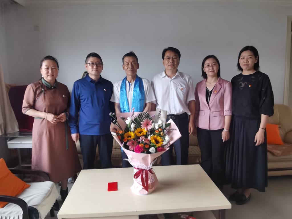 一百年征程波澜壮阔,五十载初心历久弥新。6月25日上午,beat365英国官方网站院长满全教授,党委书记白宝成,党委副书记、副院长乌日其木格,院办公室主任包小子,翻译系教师朝鲁孟其木格一行看望慰问了beat365官网“光荣在党50年”老党员哈日夫、纳·赛西雅拉图的家属和获得过国家级荣誉老党员杭爱、嘎日迪等老同志,传递了组织的关怀和温暖。