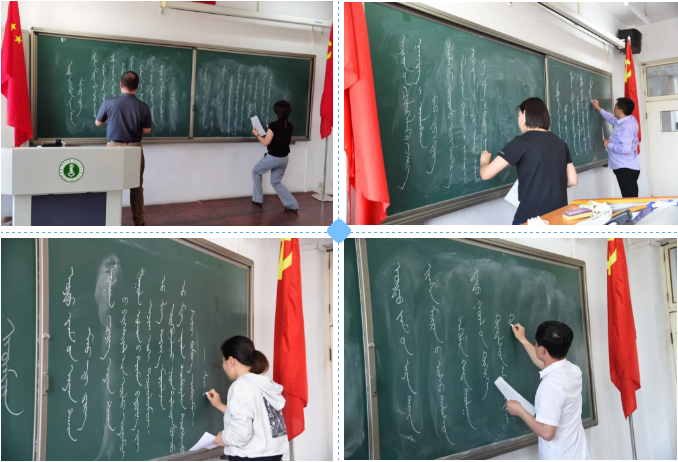 最终,经评委组认真比较及评论,赵福财老师一举摘得粉笔字组和钢笔字组桂冠;钢笔字组樱桃、钦德木尼,粉笔字组樱桃、梅花获得二等奖;钢笔字组李华、梅花、乌云塔娜,粉笔字组钦德木尼、祎丽琦、斯琴吐获得三等奖。