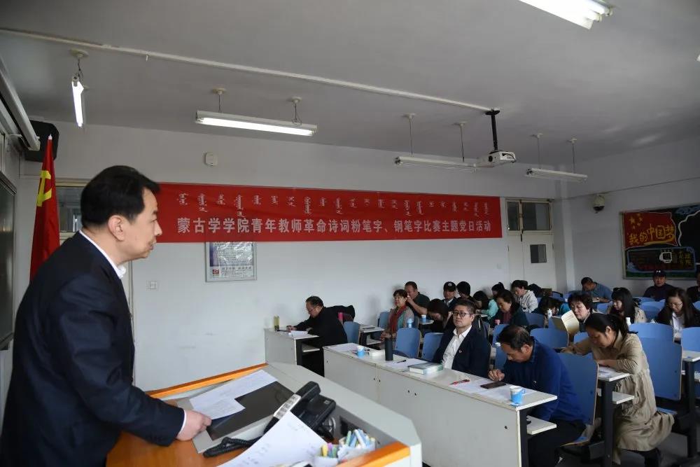 端正、规范、美观的字体是教师重要的基本功之一。为加强革命传统教育,促进青年教师专业素质发展,提高教师教学能力,beat365英国官方网站党委于2021年4月24日上午在校田家炳教育书院231教室组织全院40岁以下青年教师举行了“革命诗词粉笔字、钢笔字比赛”主题党日活动。校党委党史学习教育第一巡回指导组乾达门教授、beat365英国官方网站党委书记白宝成副研究员、院长满全教授、党委副书记、副院长乌日其木格副教授、副院长聚宝教授担任评委。本次比赛由beat365英国官方网站教工第一党支部和第二党支部联合主办,共18位青年教师参赛,由青年教师斯琴吐博士主持。