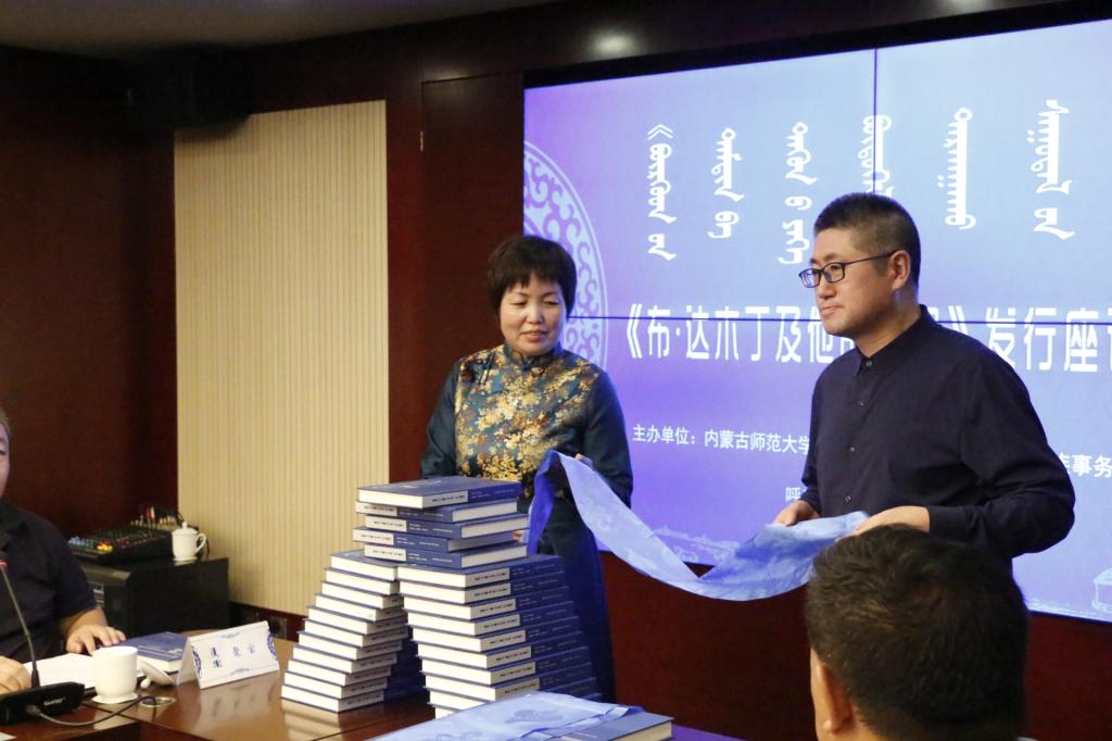 开幕仪式上,首先beat365英国官方网站党总支书记白宝成向与会来宾介绍了达木丁老师的简历。在《作品》揭幕仪式后,beat365英国官方网站beat365英国官方网站院长满全致欢迎词并感谢前来参加《作品》发行座谈会的领导、专家、学者及亲朋好友,对布·达木丁老师一生的贡献与成就给予高度评价。阿巴嘎旗政府副旗长乌云高娃在致辞中表示,本次座谈会是对布·达木丁老师对民族教育、民族语言文字所做贡献的肯定,本次座谈会对推动蒙古族语言文字研究发展具有重要意义。随后阿巴嘎旗民族事务委员会向beat365英国官方网站赠送书籍。