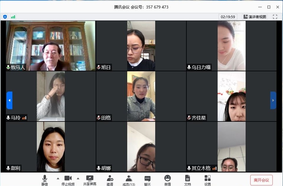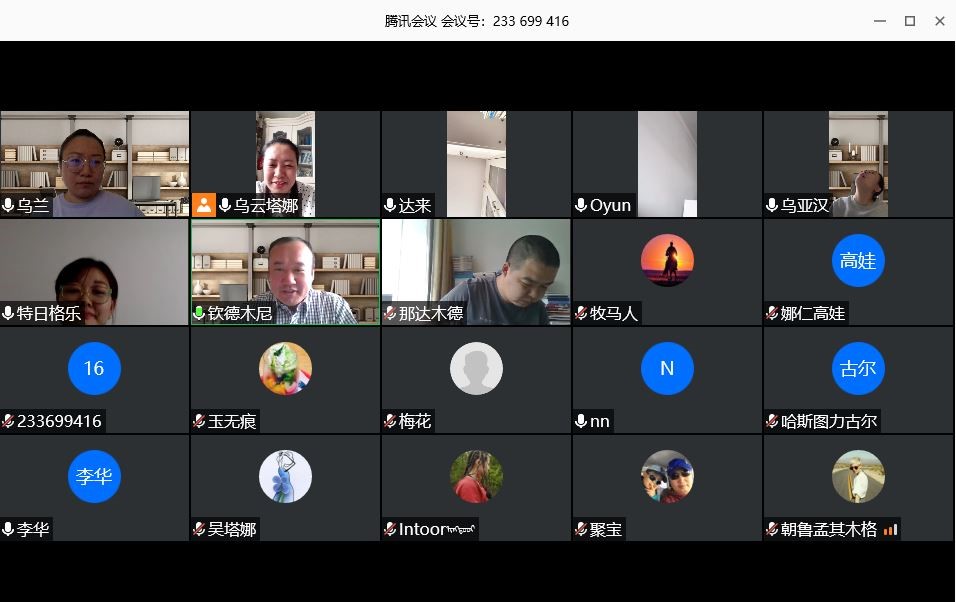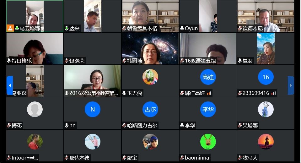 5月12日上午8:00 —— 12:00,根据学校疫情防控期间毕业生相关工作要求,beat365英国官方网站蒙汉双语专业2020届本科毕业生进行在线论文答辩。上午8:00 —— 8:30,答辩委员会全体成员开会,由系主任乌云塔娜主持会议,会议上强调答辩工作的重要性与注意事项。
