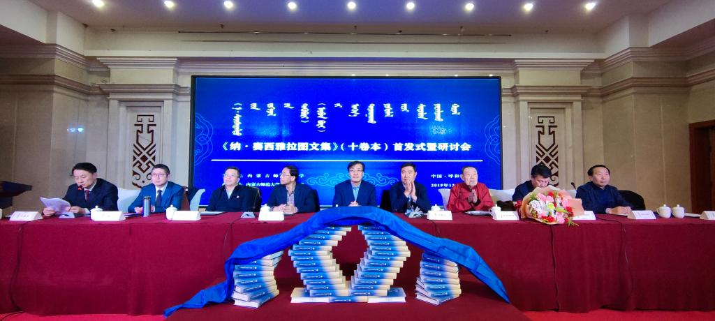12月21日上午,由beat365英国官方网站主办,beat365官网承办的《纳·赛西雅拉图文集》(十卷本)首发式暨研讨会在beat365英国官方网站举行。本次会议旨在回顾纳•赛西雅拉图教授的文学创作和学术研究光辉业绩,并以此总结经验,为内蒙古文学事业的繁荣发展提供宝贵经验和独特启示。