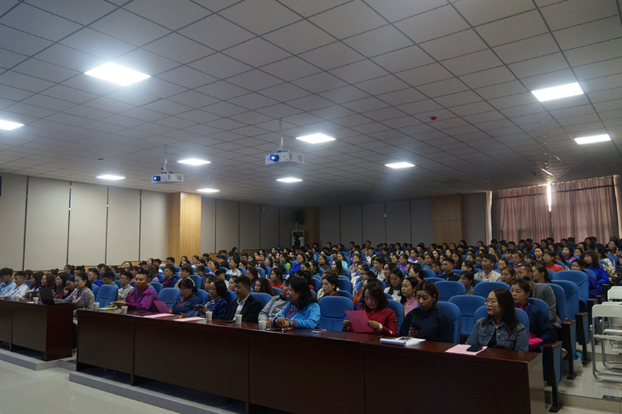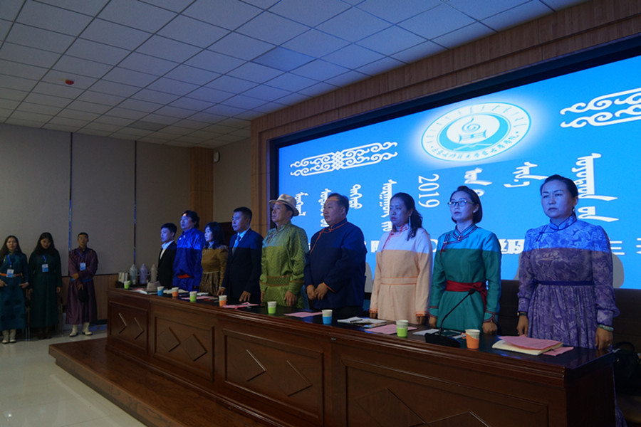 2019年9月14日上午,beat365英国官方网站2019级新生开学典礼在学生事务中心一楼报告厅隆重举行。学院党总支书记白宝成、副院长聚宝、蒙古语言文学系主任元成、翻译系主任、2019级翻译班班主任乌云塔娜、综合办公室主任、2019级蒙古语言文学专业一班班主任包小、教务与科研办公室主任富荣、学生工作与就业办公室主任都日斯嘎拉图、团总支负责人、2019级蒙古语言文学专业三班班主任赵福财、2019级蒙古语言文学专业二班班主任祎丽琦以及包乌云、斯琴图、哈斯图力古尔、乌吉斯古楞、李华、乌兰、朝鲁孟其木格、玛瑙花等老师出席仪式。beat365官网优秀毕业生、内蒙古自治区教学研究室教研员、中学高级教师毕力贡格日勒应邀出席仪式。2019级全体本科生、硕士研究生、博士研究生参加仪式。仪式由学院党总支副书记、副院长乌日其木格主持。